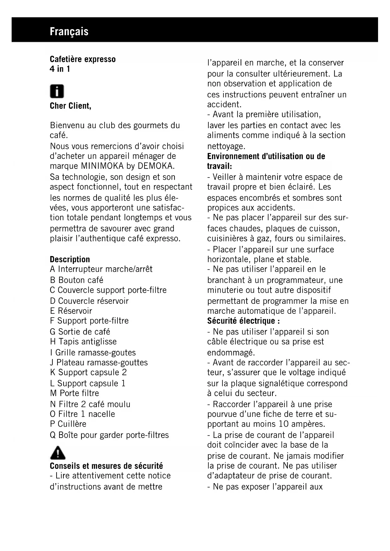 CM2185 - Machine à café Minimoka - Notice d'utilisation et mode d'emploi gratuit
