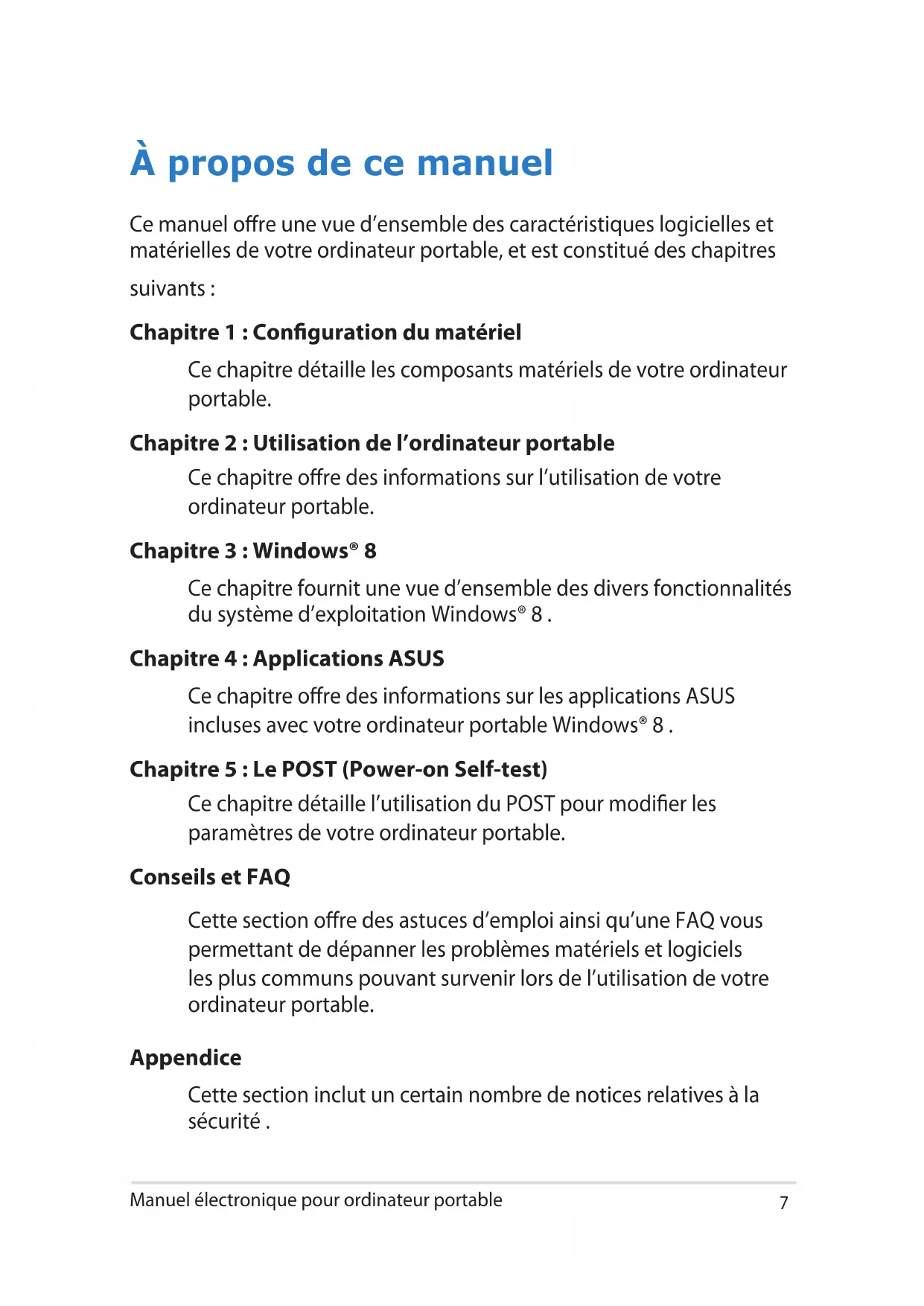 Application ASUS VivoBook 79Manuel électronique pour ordinateur portable