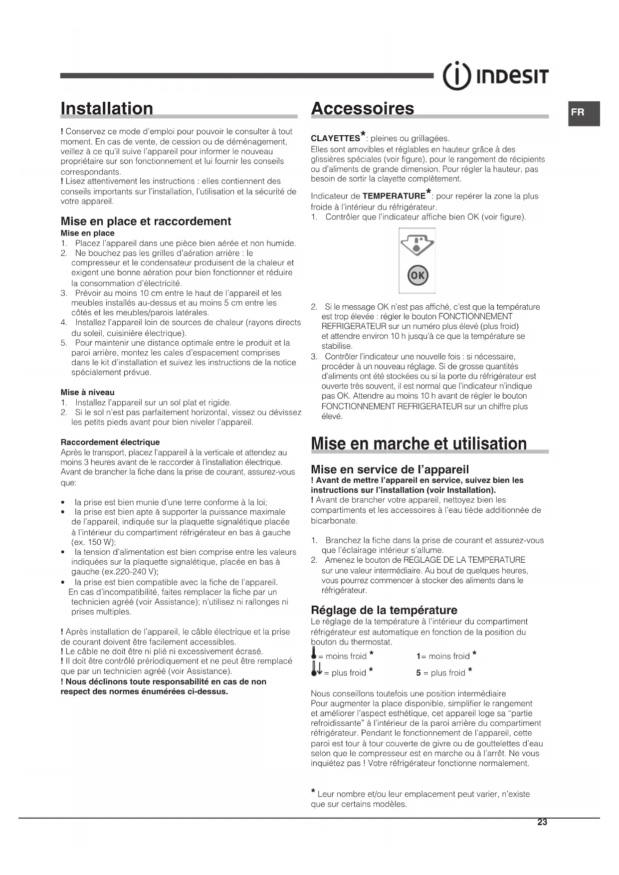 BIAA 13 K DR - Réfrigérateur INDESIT - Notice d'utilisation et mode d'emploi gratuit