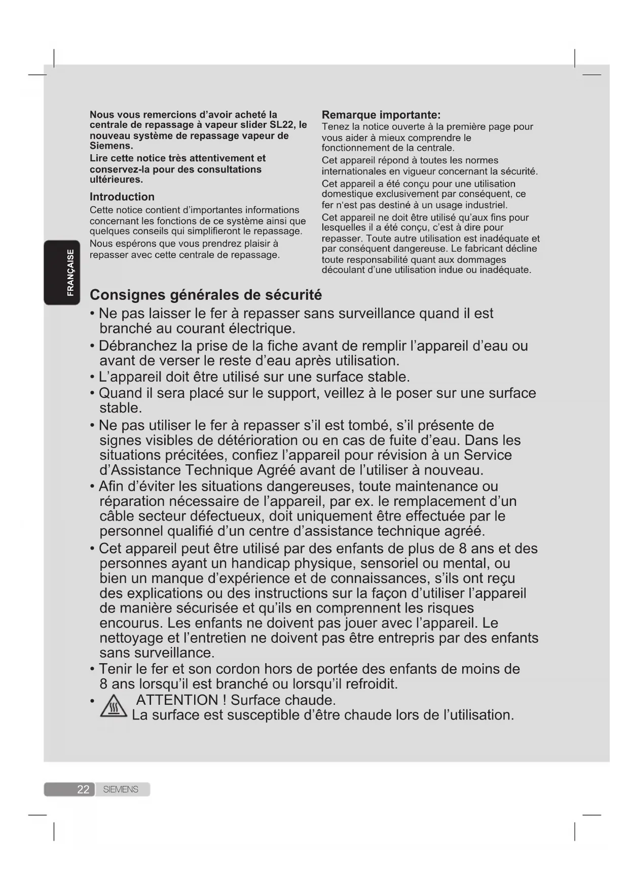 TS22XTRM24 - Fer à repasser SIEMENS - Notice d'utilisation et mode d'emploi gratuit
