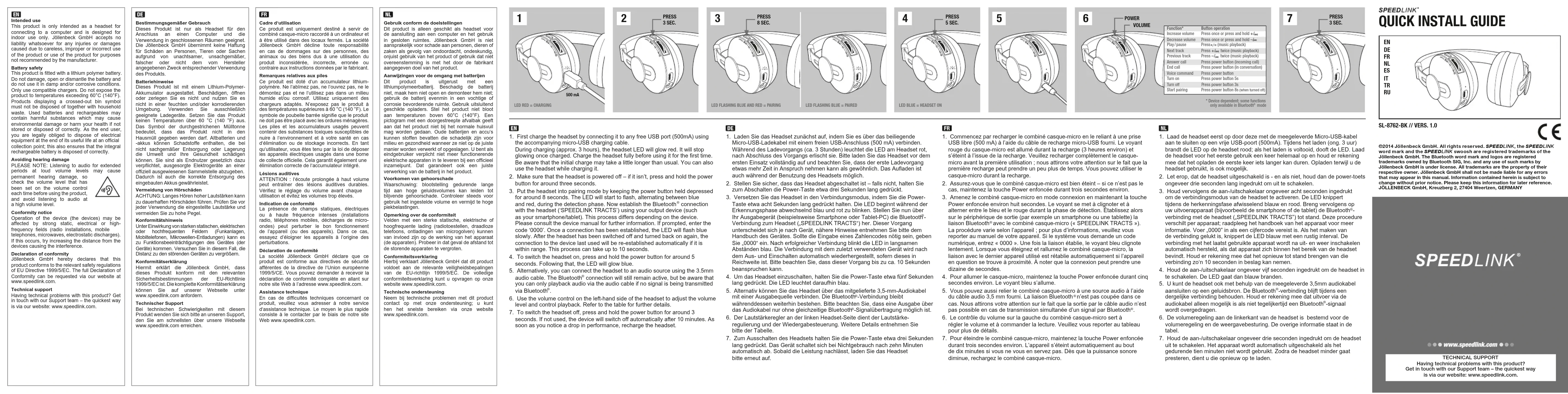 Tracts SL8762 - Ecouteur Speedlink - Notice d'utilisation et mode d'emploi gratuit