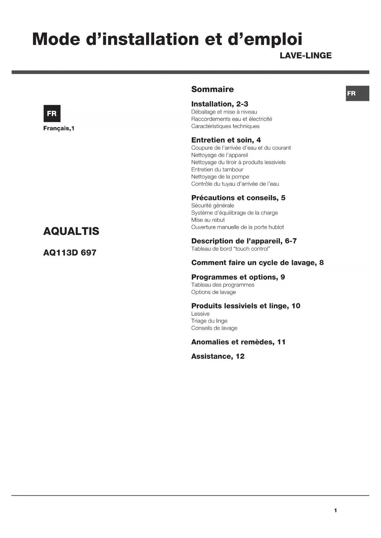 MODE D'EMPLOI Aqualtis AQ113D 697 FR HOTPOINT