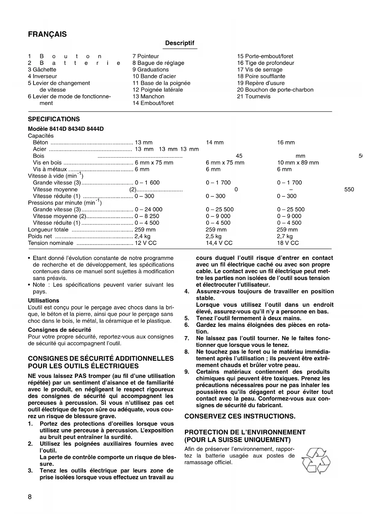 Téléchargez la notice de votre Perceuse au format PDF gratuitement ! Retrouvez votre notice 8414DWFE - MAKITA et reprennez votre appareil électronique en main. Sur cette page sont publiés tous les documents nécessaires à l'utilisation de votre appareil 8414DWFE de la marque MAKITA.