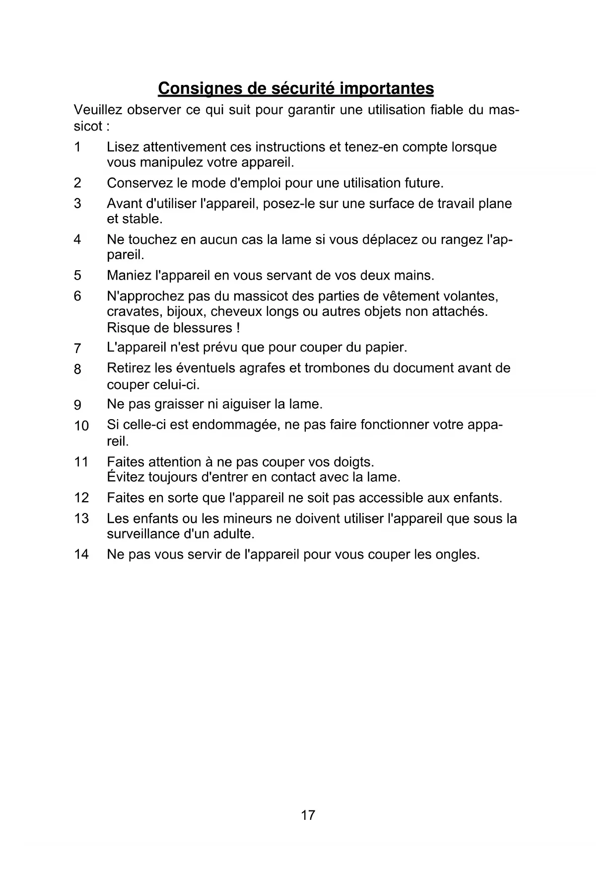 Ne pas vous servir de l'appareil pour vous couper les ongles.18