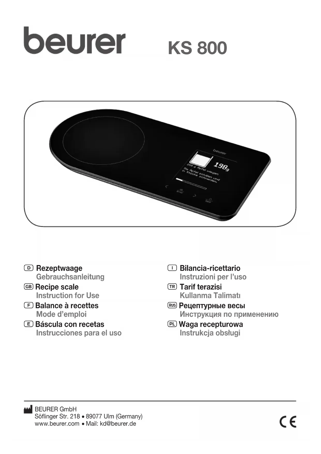 KS 800 - Balances de cuisine BEURER - Notice d'utilisation et mode d'emploi gratuit