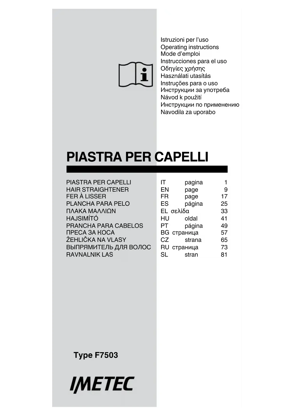 Téléchargez la notice de votre Lisseur au format PDF gratuitement ! Retrouvez votre notice B6 200 - IMETEC et reprennez votre appareil électronique en main. Sur cette page sont publiés tous les documents nécessaires à l'utilisation de votre appareil B6 200 de la marque IMETEC.