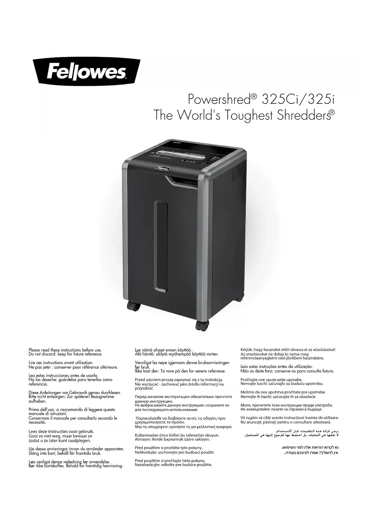 Retrouvez gratuitement la notice de l'appareil Powershred 225i FELLOWES au format PDF.