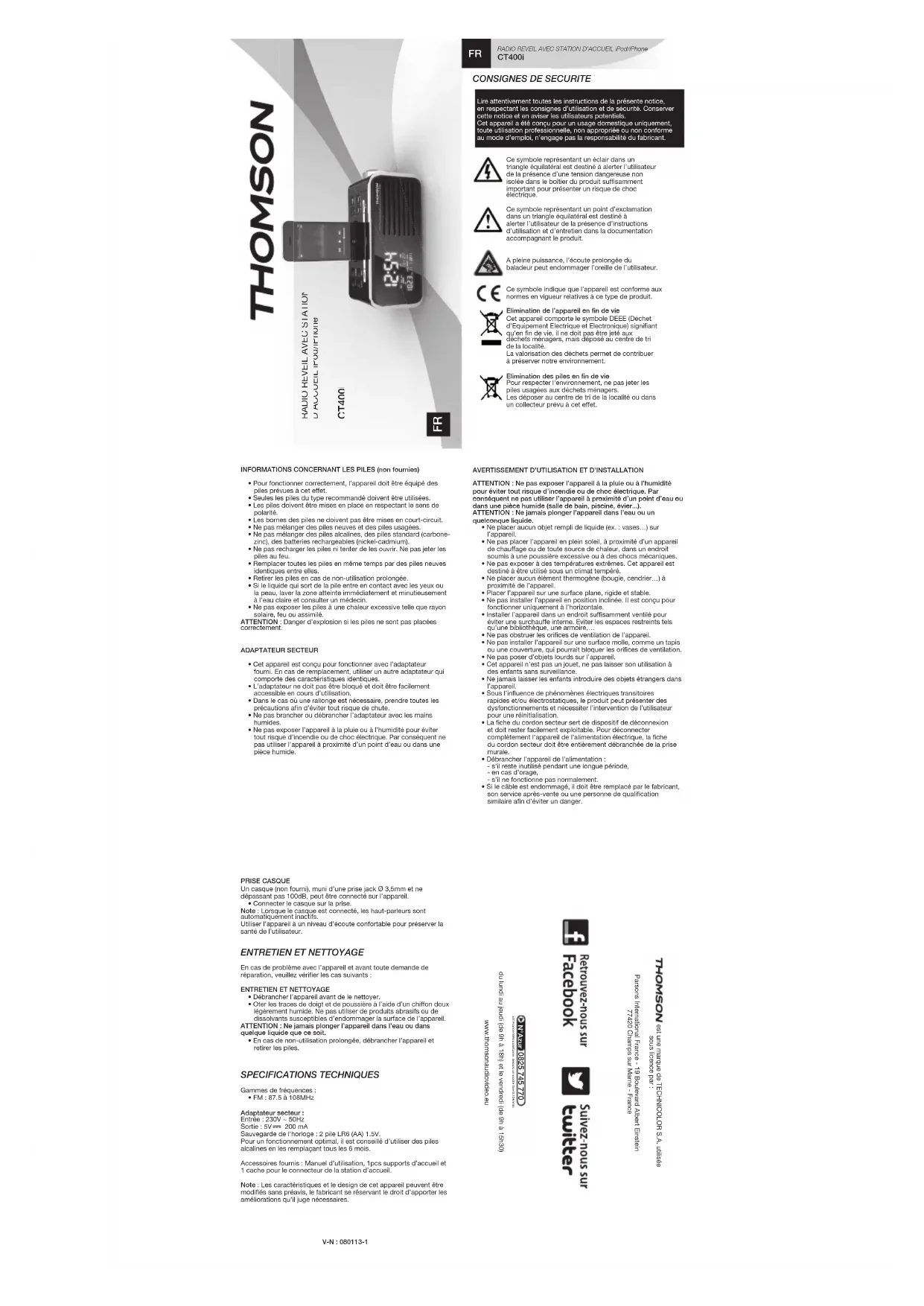 CT400I - Radio THOMSON - Notice d'utilisation et mode d'emploi gratuit