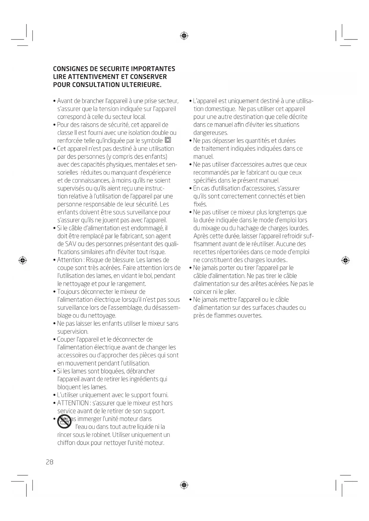 - Ne pas laisser les enfants utiliser le mixeur sans supervision.