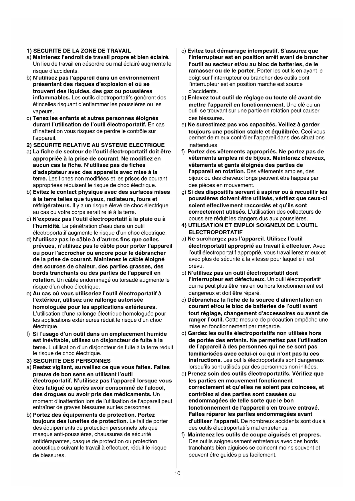 e) Au cas où vous utiliseriez l’outil électroportatif à