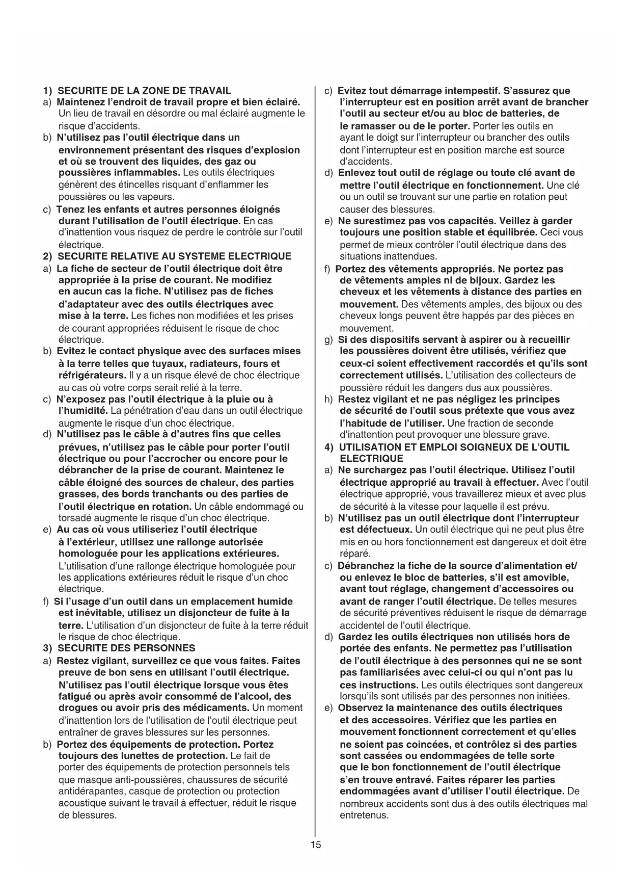 4) UTILISATION ET EMPLOI SOIGNEUX DE L’OUTIL ELECTRIQUE