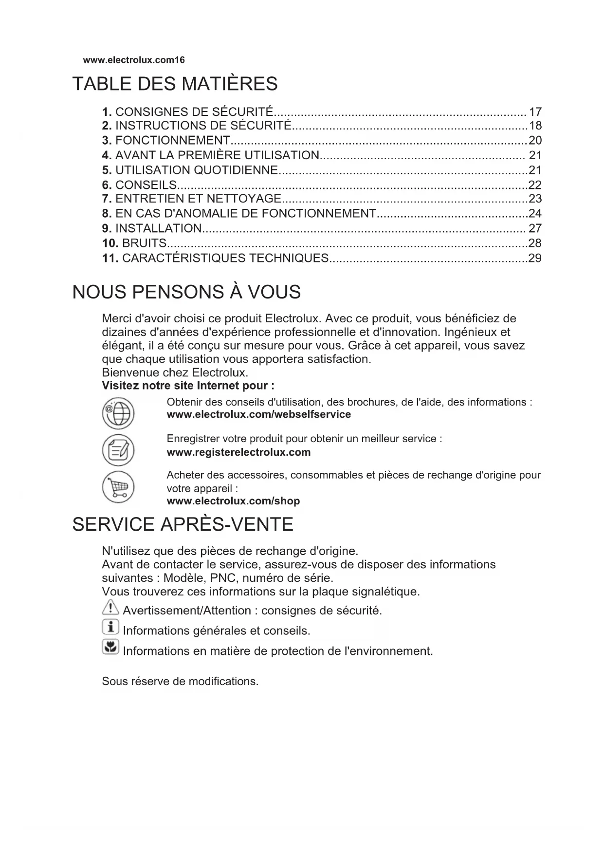 NOUS PENSONS À VOUS Merci d'avoir choisi ce produit Electrolux. Avec ce produit, vous bénéficiez de