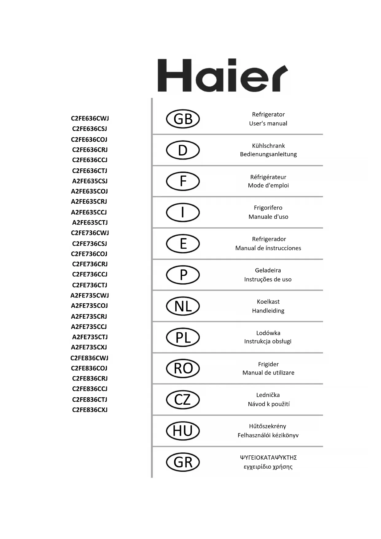 A2FE635COJ - Réfrigérateur HAIER - Notice d'utilisation et mode d'emploi gratuit