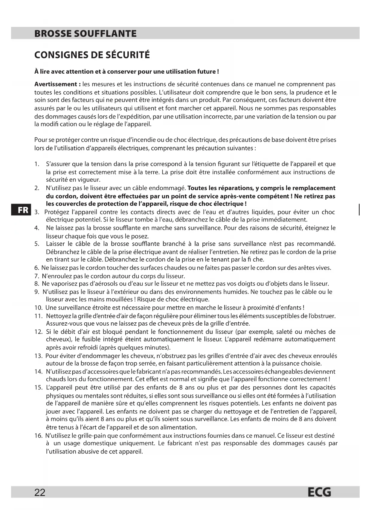 16. N’utilisez le grille-pain que conformément aux instructions fournies dans ce manuel. Ce lisseur est destiné
