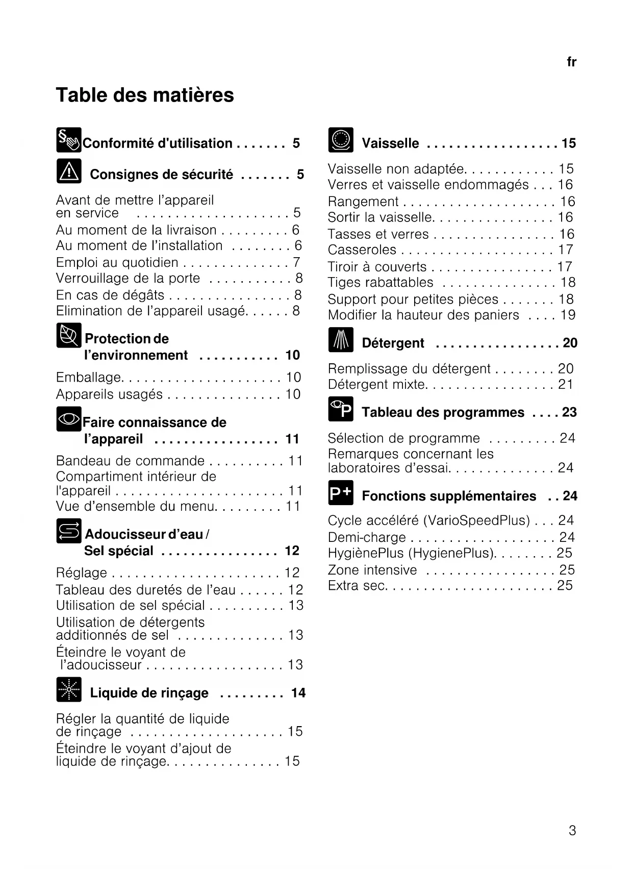 - Vaisselle . . . . . . . . . . . . . . . . . . 15