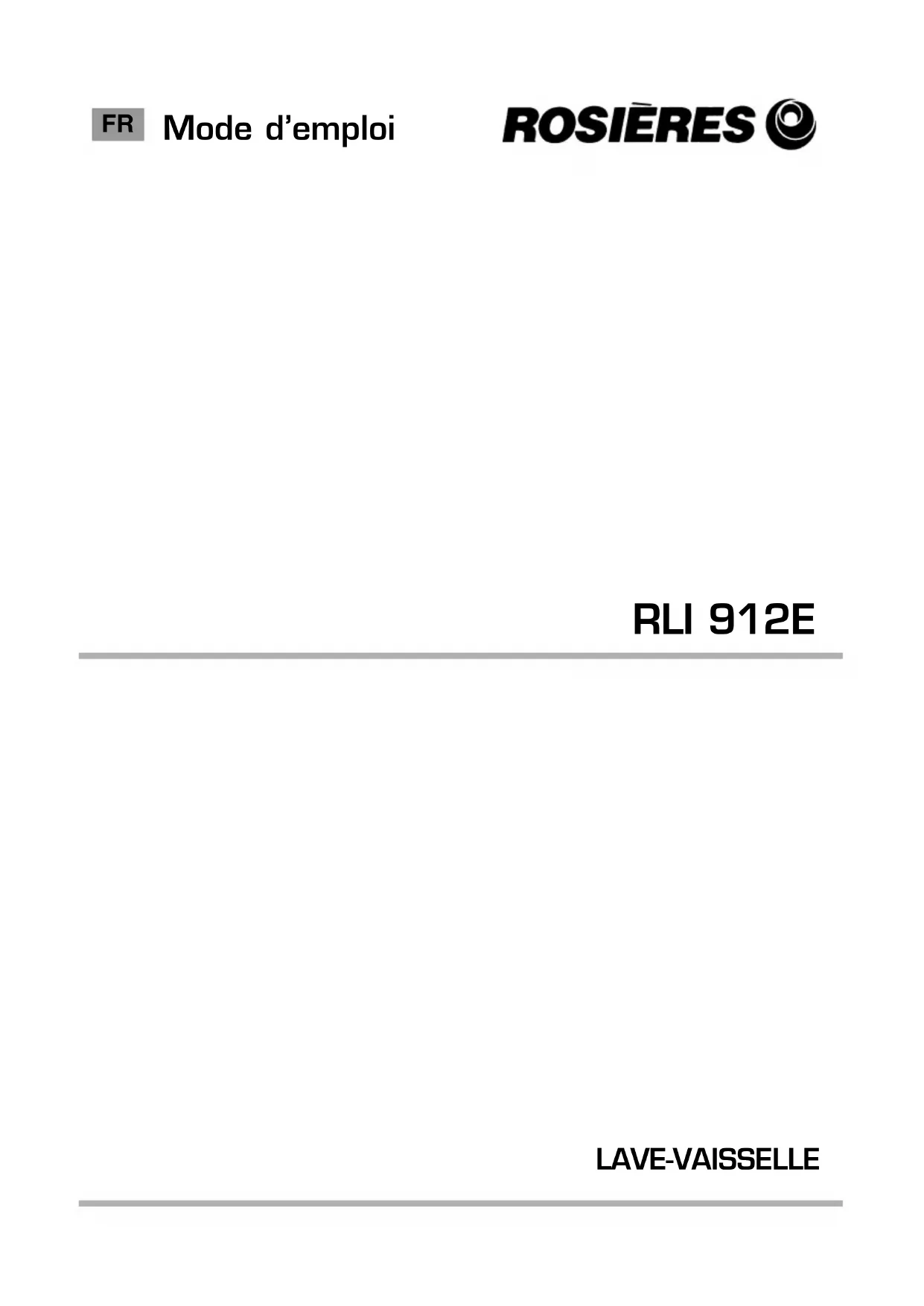 RLI 912 E IN - Lave-vaisselle ROSIERES - Notice d'utilisation et mode d'emploi gratuit