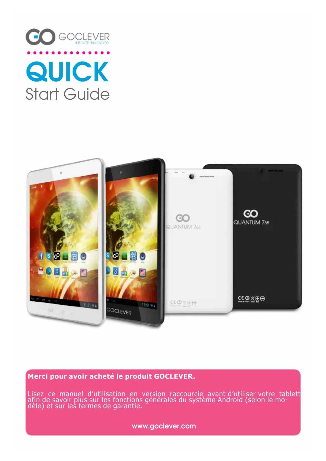 Quantum 785 - Tablette GOCLEVER - Notice d'utilisation et mode d'emploi gratuit
