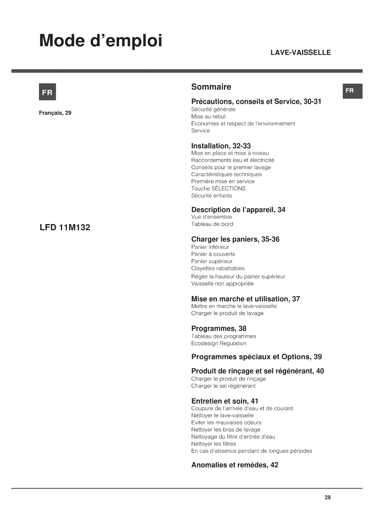 LFD 11M132 EU - Lave-vaisselle HOTPOINT - Notice d'utilisation et mode d'emploi gratuit