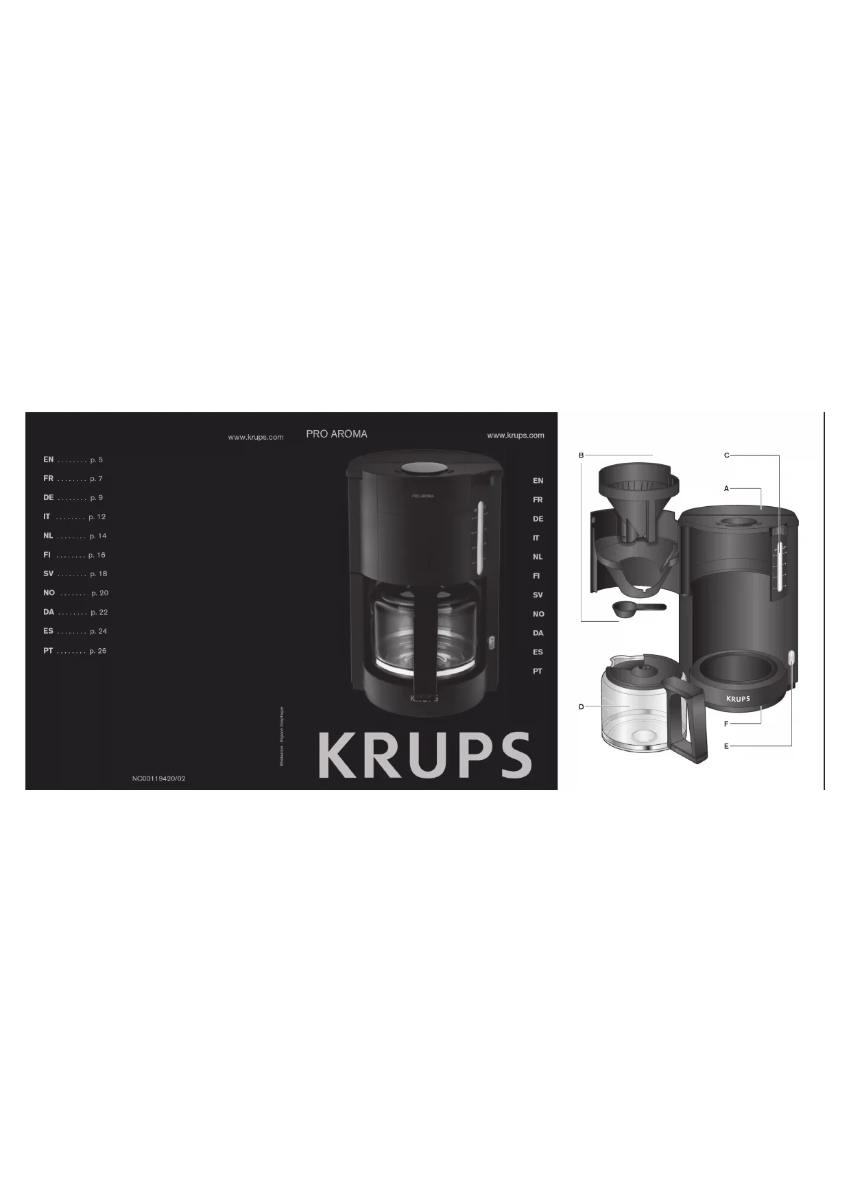 Retrouvez gratuitement la notice de l'appareil ProAroma KRUPS au format PDF.