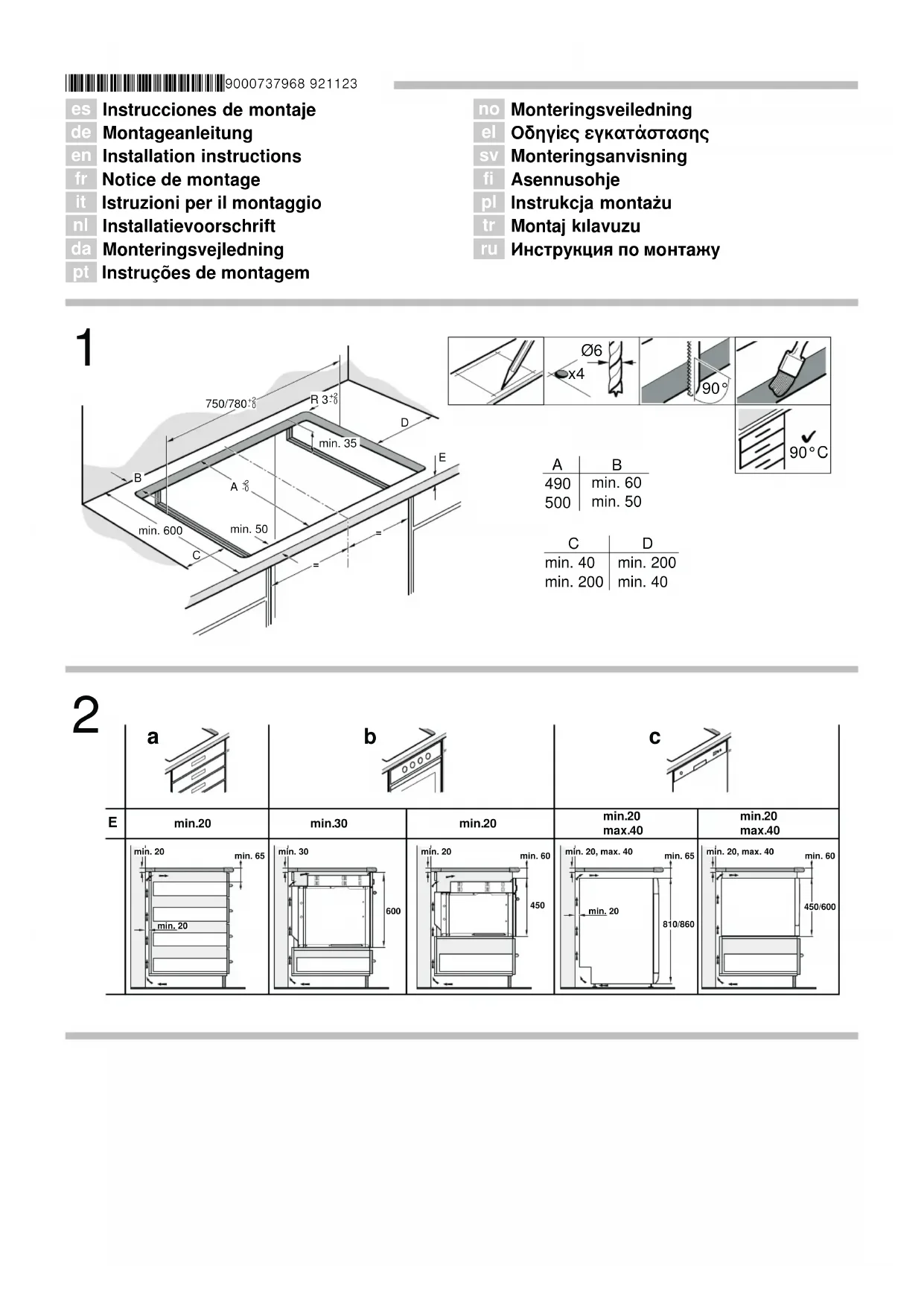 supérieure du plan de travail.Montage sur lave-vaisselle, schéma 2c