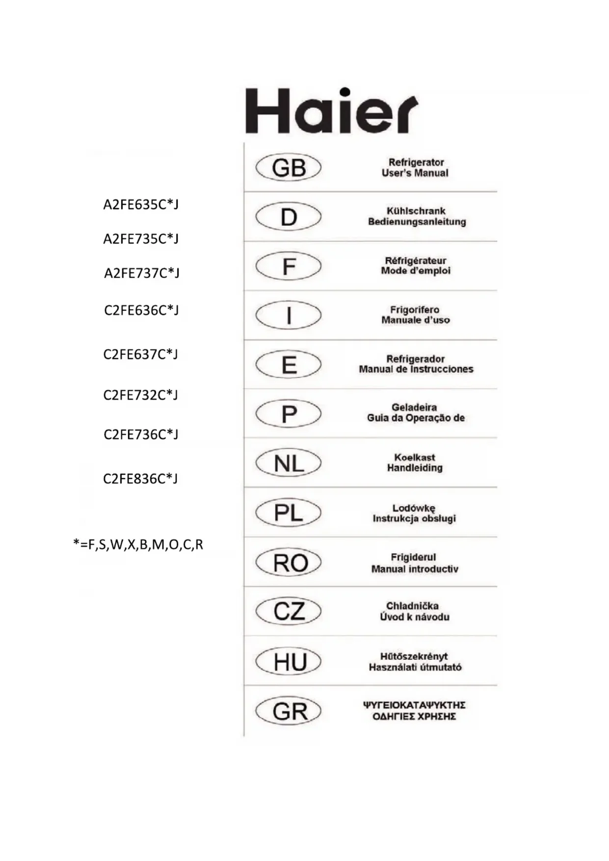 A2FE635CFJ - Réfrigérateur HAIER - Notice d'utilisation et mode d'emploi gratuit
