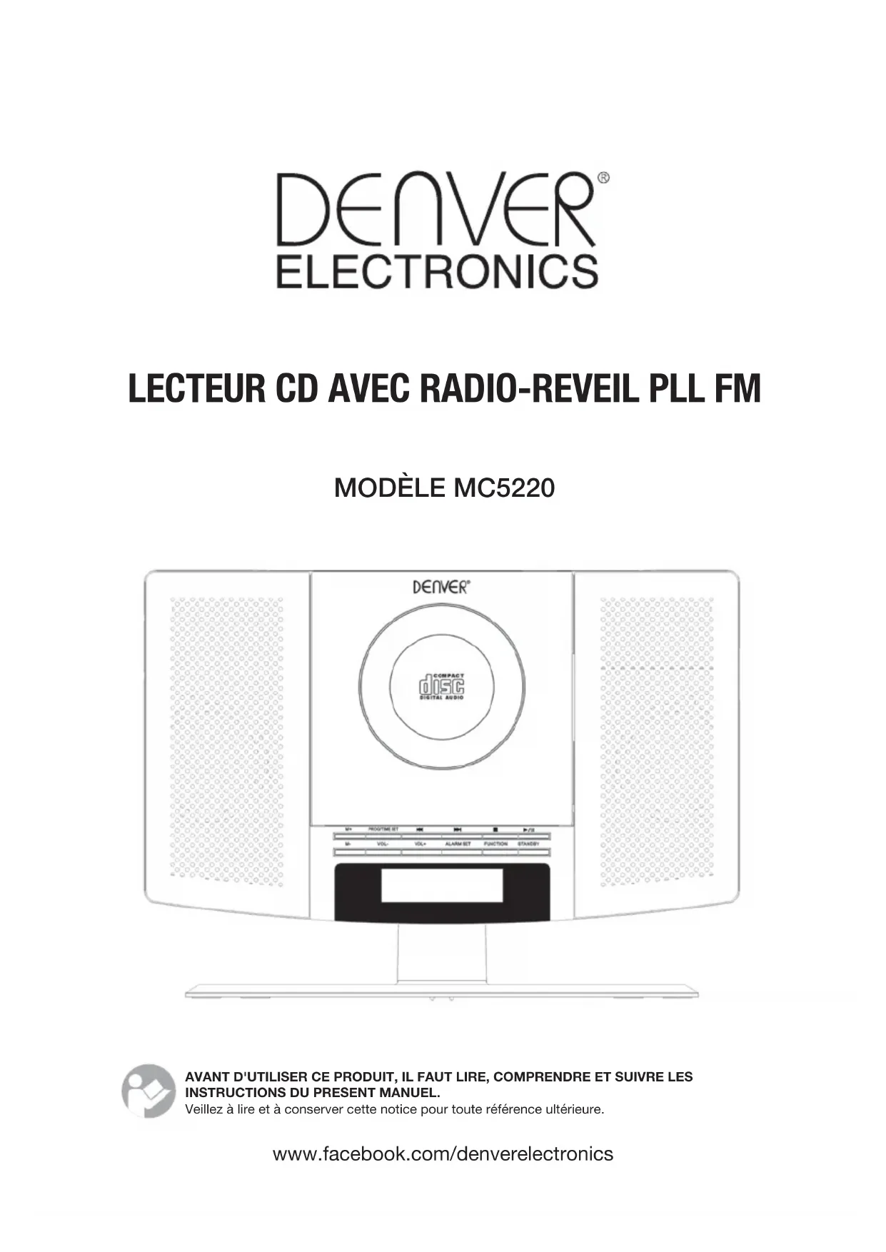 AVANT D'UTILISER CE PRODUIT, IL FAUT LIRE, COMPRENDRE ET SUIVRE LES INSTRUCTIONS DU PRESENT MANUEL. Veillez à lire et à conserver cette notice pour toute référence ultérieure. www.facebook.com/denverelectronicsCONSIGNES DE SECURITE