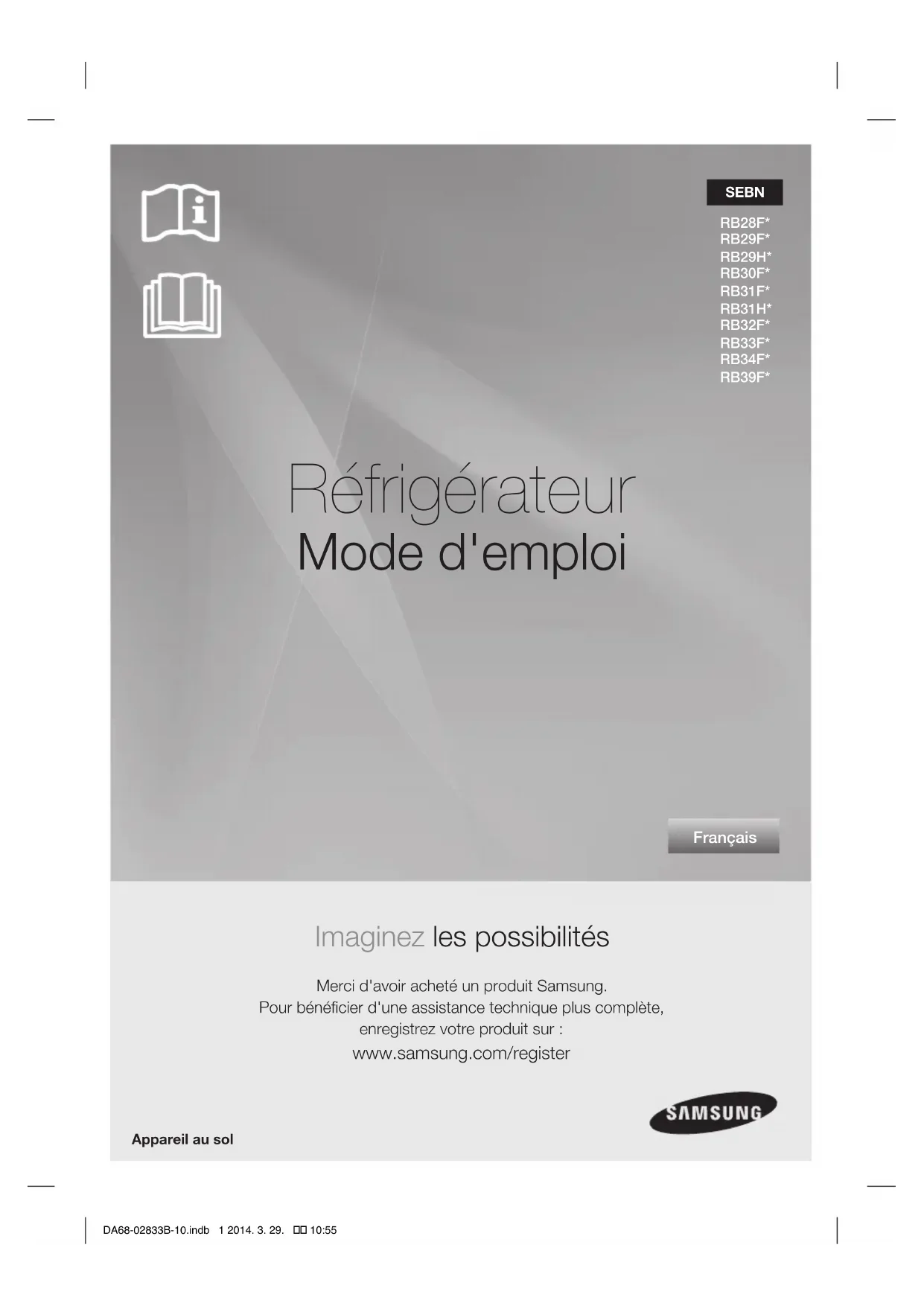 Retrouvez gratuitement la notice de l'appareil RB29HER2BSA SAMSUNG au format PDF.