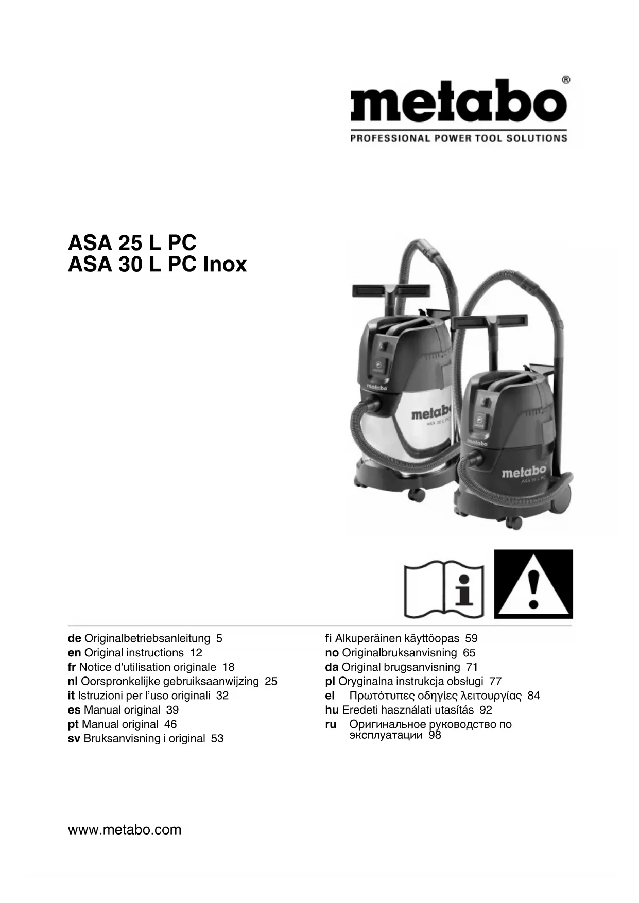 Retrouvez gratuitement la notice de l'appareil ASA 25 L PC METABO au format PDF.