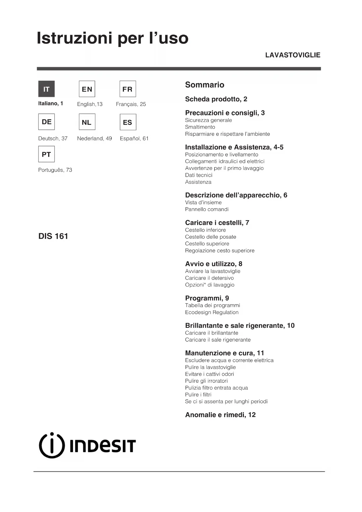 Retrouvez gratuitement la notice de l'appareil DIS 161 A INDESIT au format PDF.