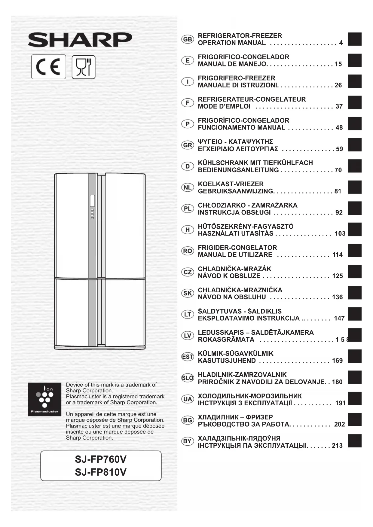 Retrouvez gratuitement la notice de l'appareil SJFP760VBE SHARP au format PDF.