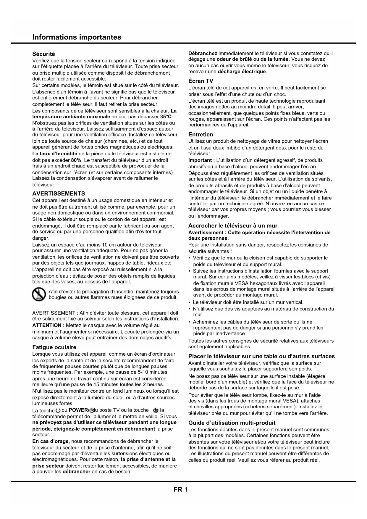 Toutes les autres consignes de sécurité relatives aux téléviseurs