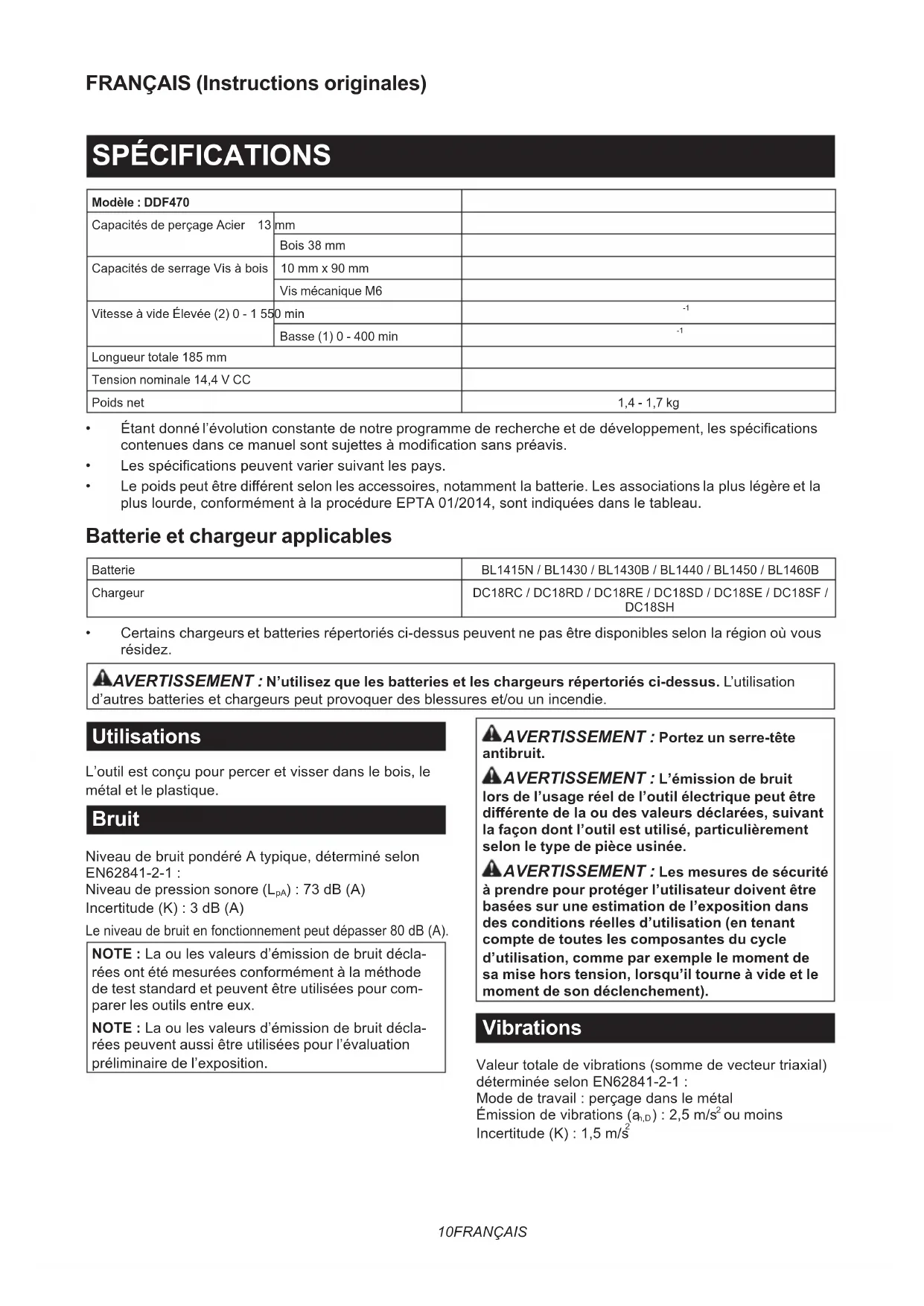 MODE D'EMPLOI DDF470RF3J MAKITA
