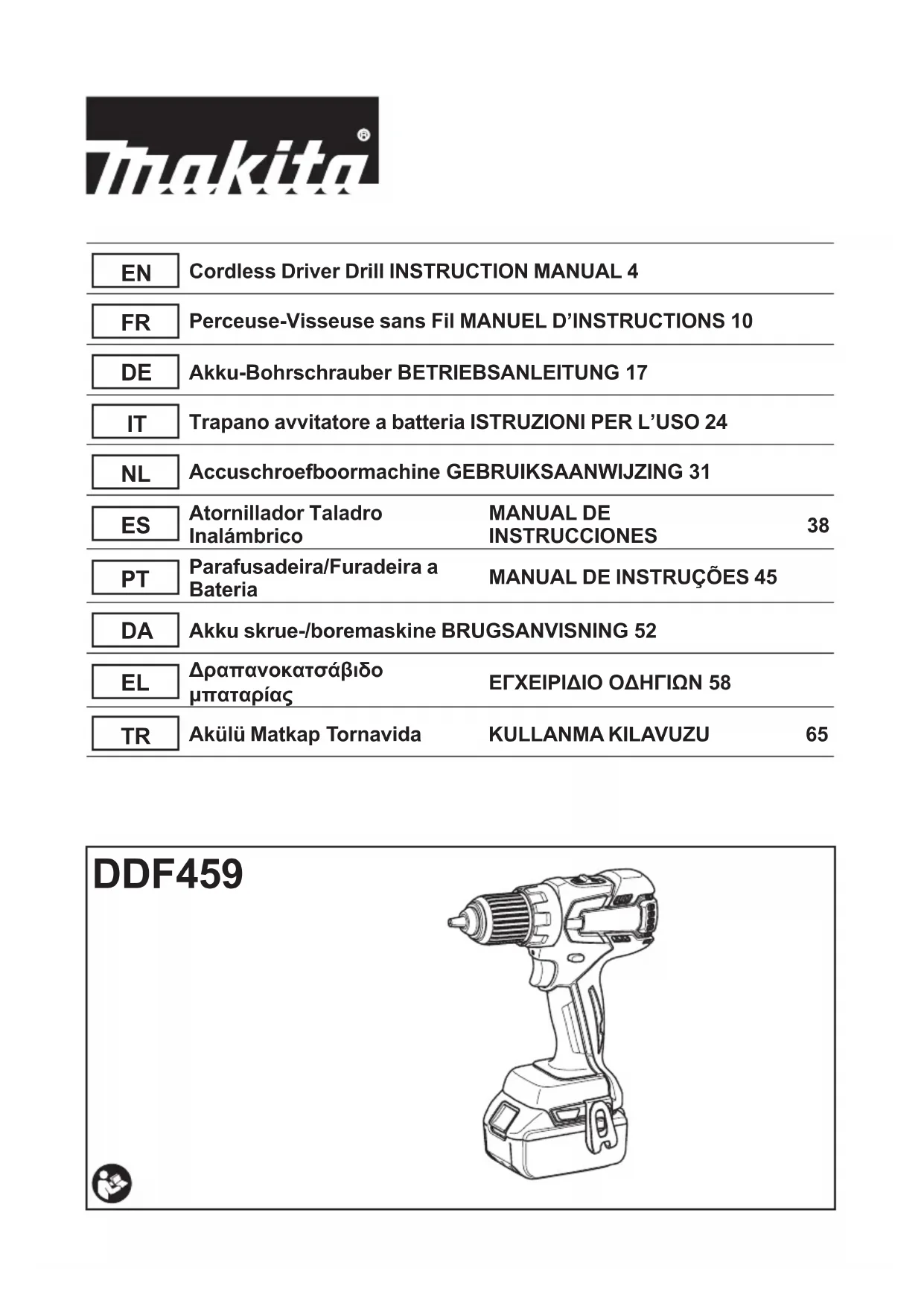 Retrouvez gratuitement la notice de l'appareil DDF459 MAKITA au format PDF.