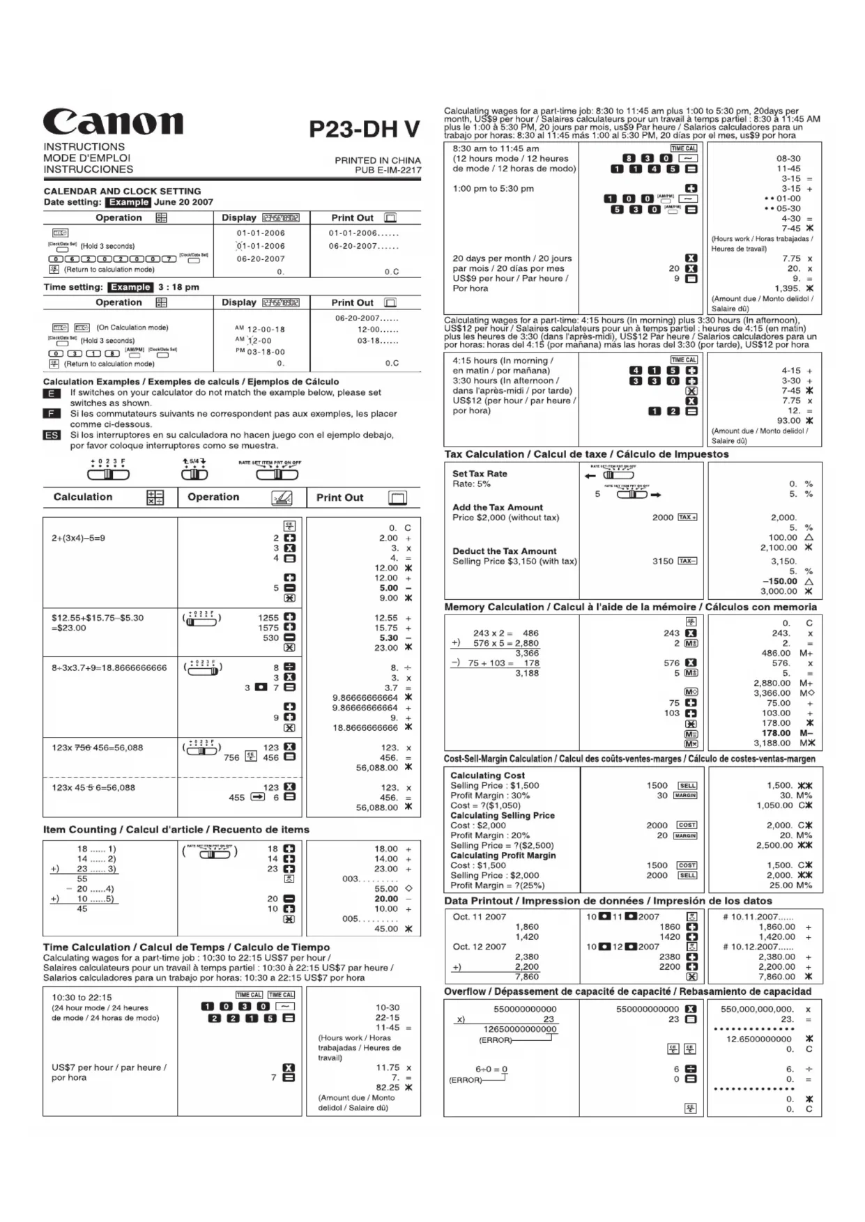 P23DH V - Calculatrice CANON - Notice d'utilisation et mode d'emploi gratuit