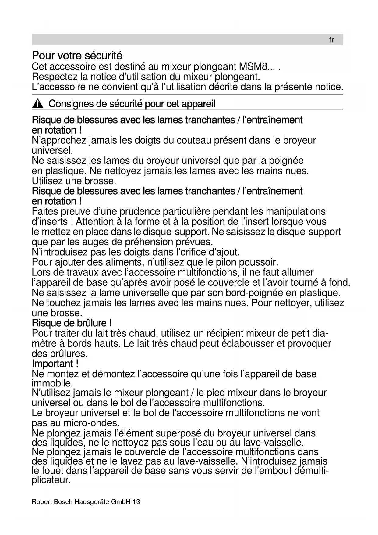 [fr] Mode d’emploi Accessoires (mixer plongeant) 13