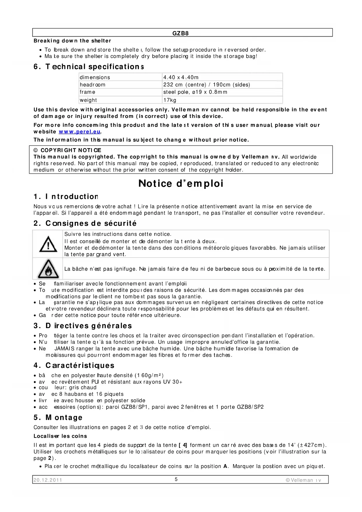 GZB8 - Tente Perel - Notice d'utilisation et mode d'emploi gratuit