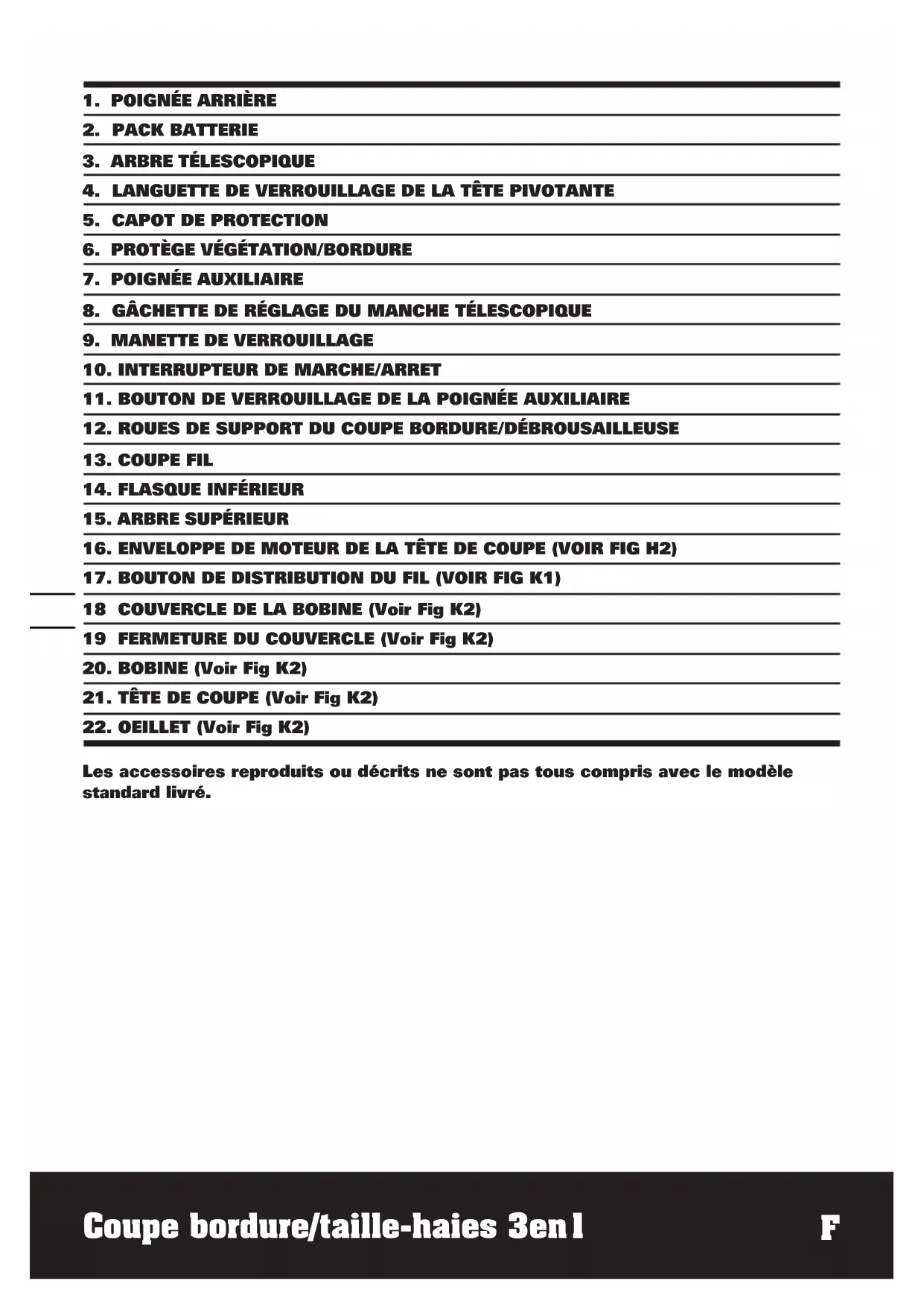 Les accessoires reproduits ou décrits ne sont pas tous compris avec le modèle standard livré.3130 Coupe bordure/taille-haies 3en1