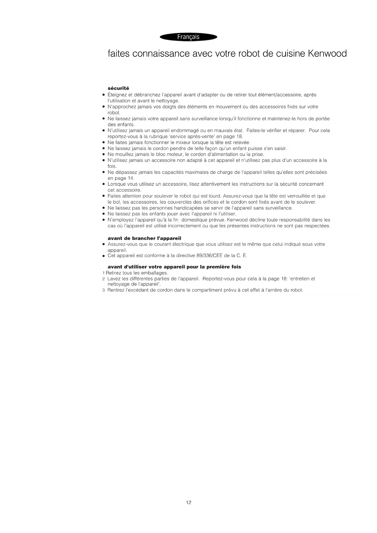Félicitations pour l’achat de votre robot Kenwood. Avec une gamme impressionnante