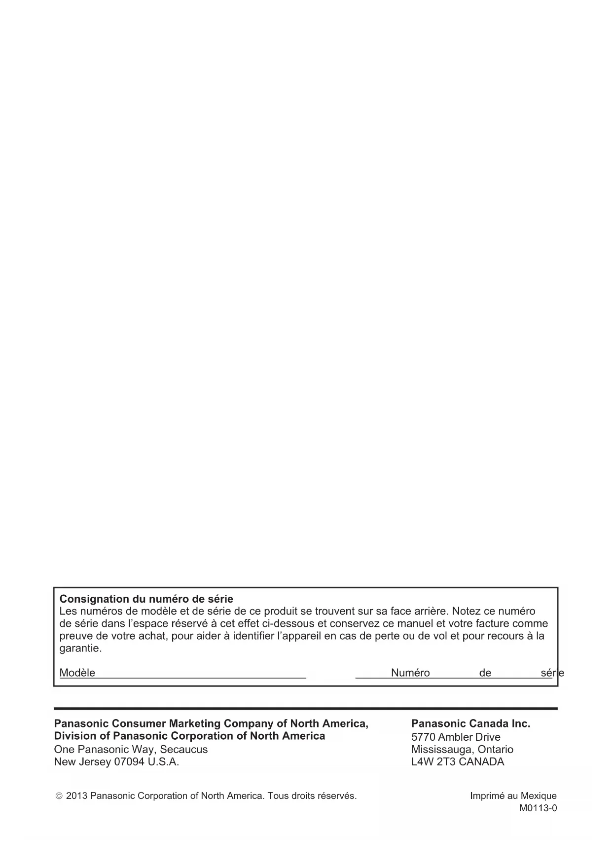 2013 Panasonic Corporation of North America. Tous droits réservés.
