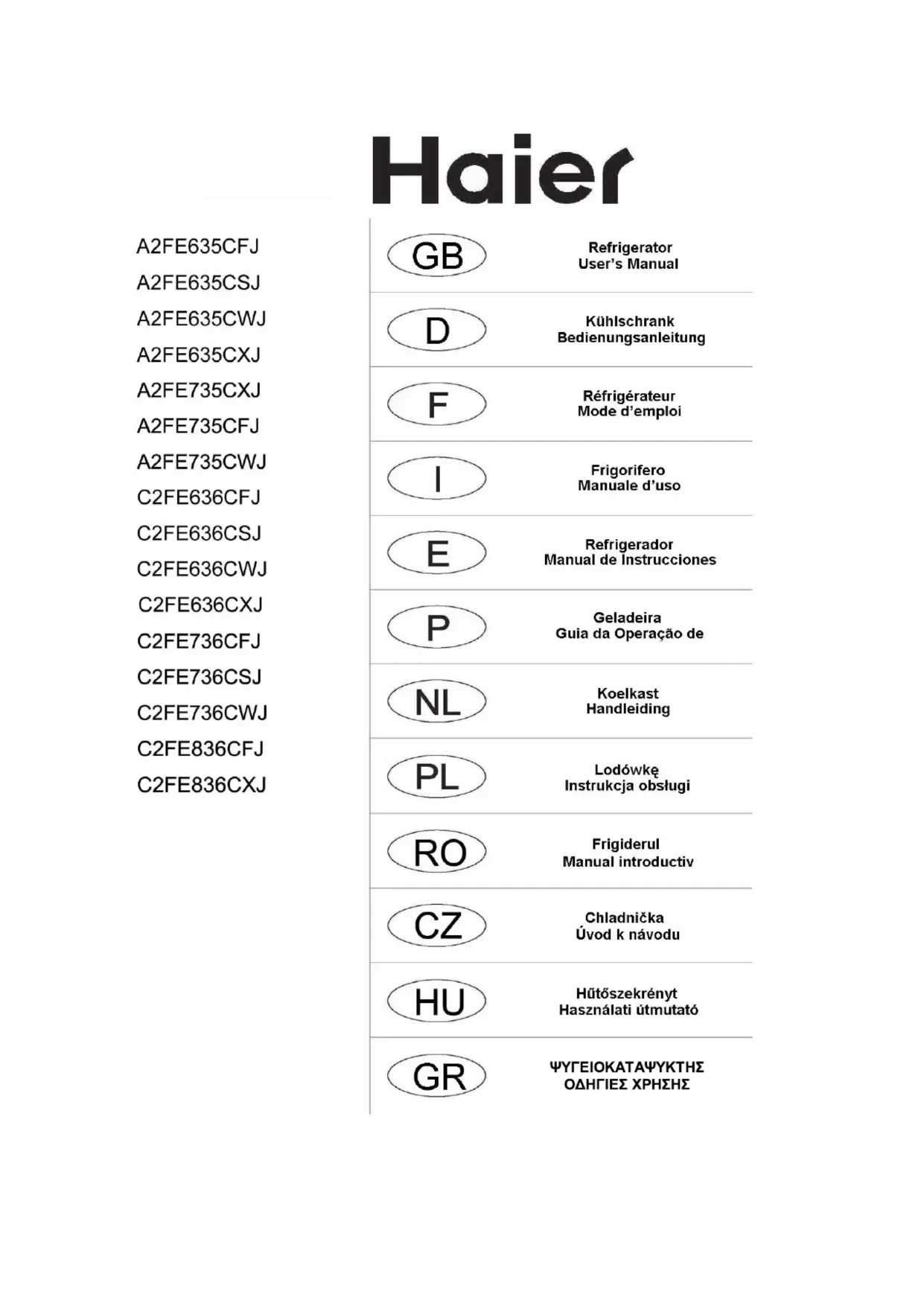 A2FE635CTJ - Réfrigérateur HAIER - Notice d'utilisation et mode d'emploi gratuit