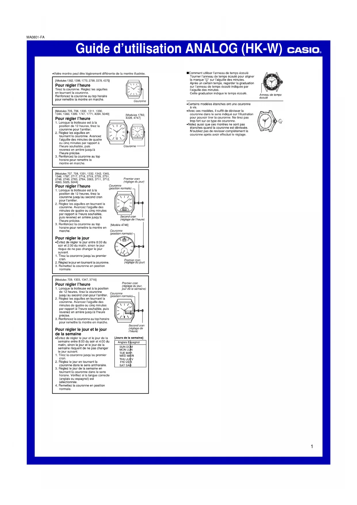 montre en marche. [Modules 707, 708, 1331, 1332, 1342, 1345,1346, 1787, 2717, 2718, 2719, 2725, 2731,2748, 2749, 2783, 2784, 3363, 3711, 3712,4393, 5025, 5044] Pour régler l’heure