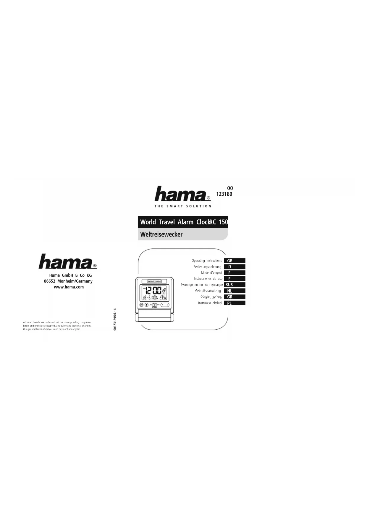 Retrouvez gratuitement la notice de l'appareil RC 150 HAMA au format PDF.