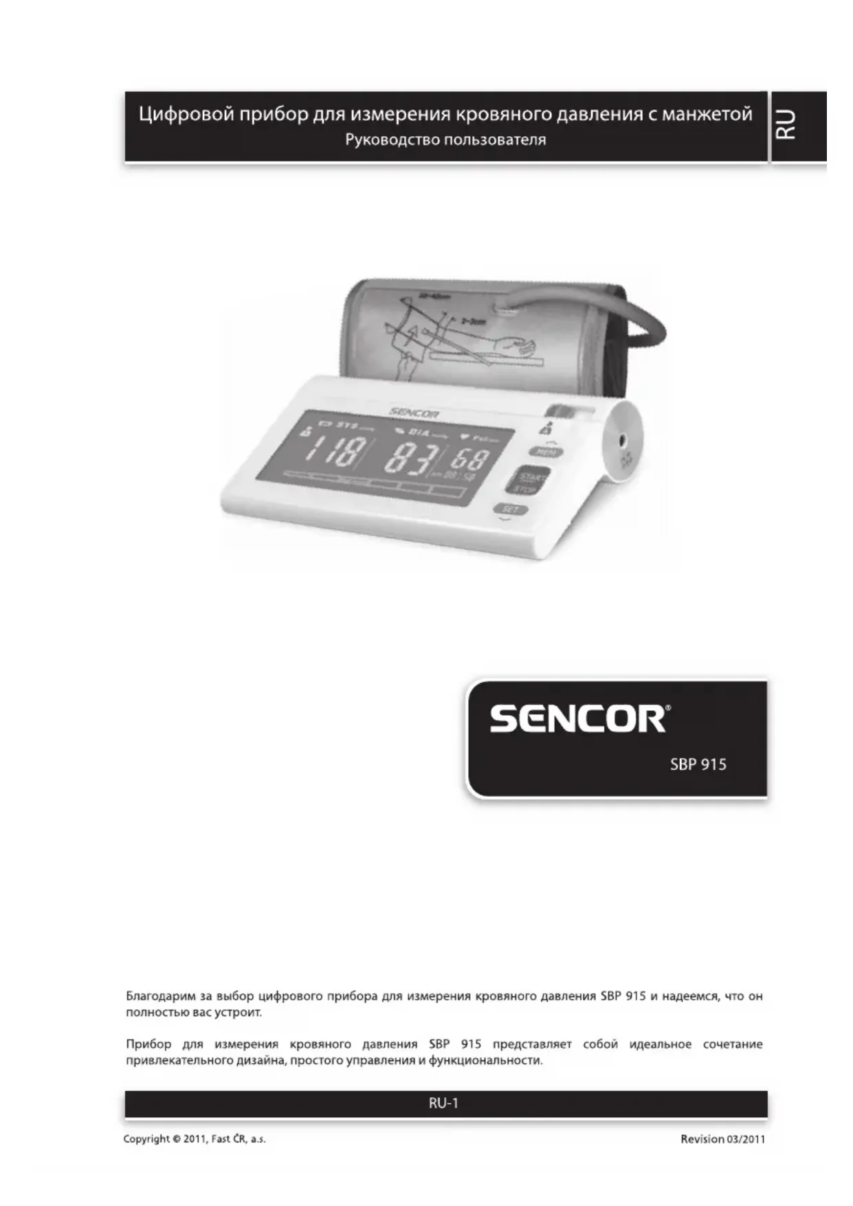 Téléchargez la notice de votre Tensiomètre au format PDF gratuitement ! Retrouvez votre notice SBP 915 - SENCOR et reprennez votre appareil électronique en main. Sur cette page sont publiés tous les documents nécessaires à l'utilisation de votre appareil SBP 915 de la marque SENCOR.