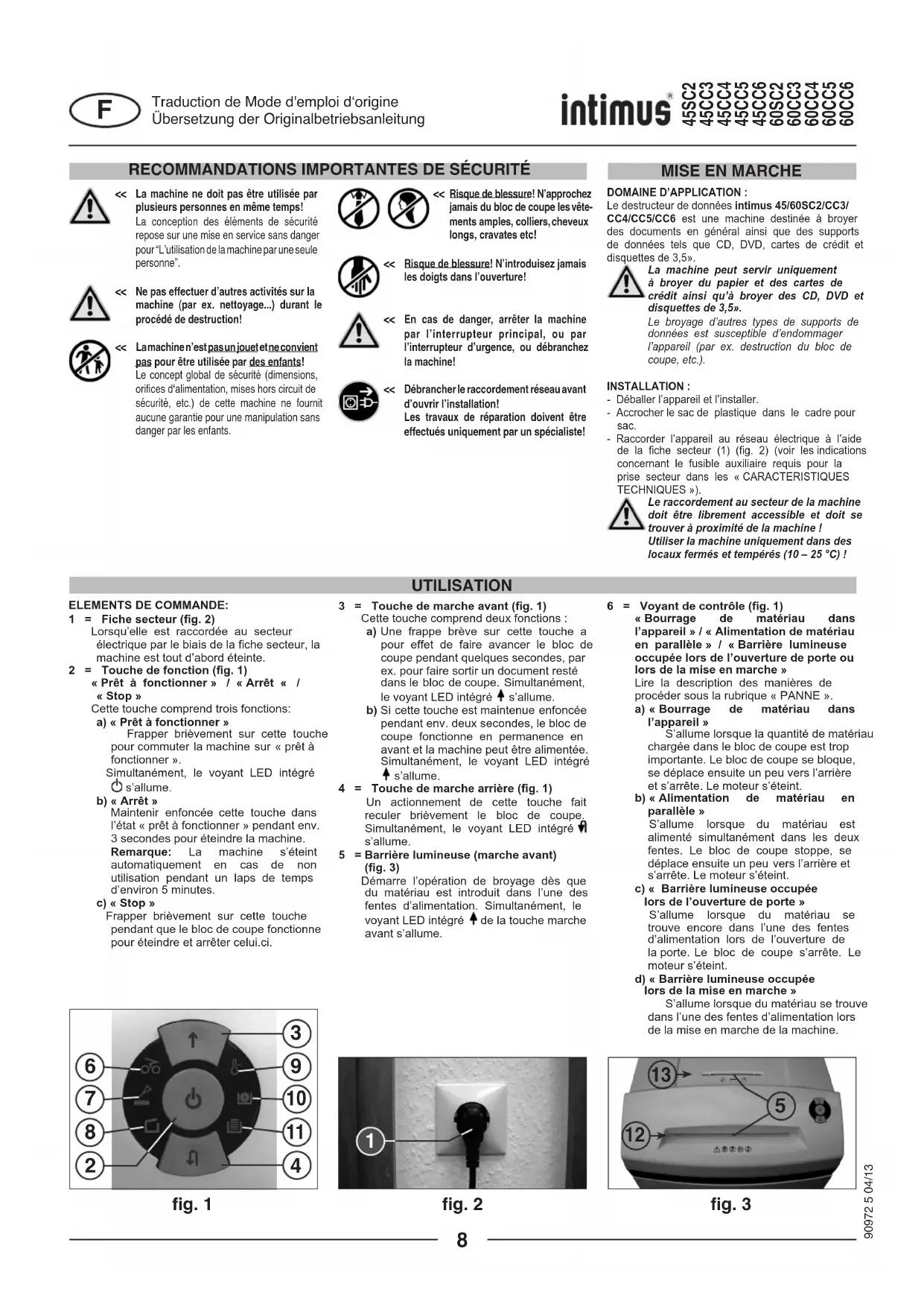 45 CC3 - Destructeur de document Intimus - Notice d'utilisation et mode d'emploi gratuit