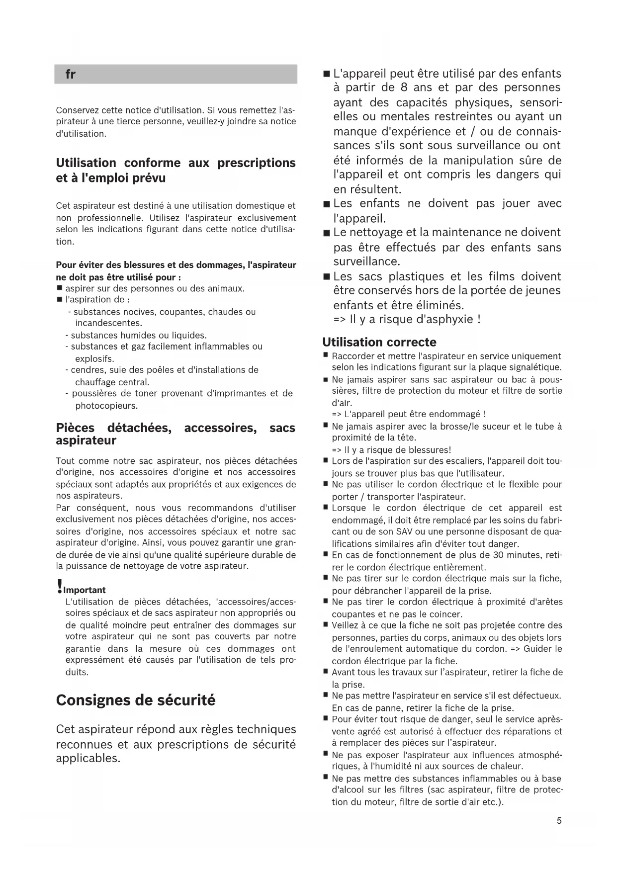 BSGL5310 - Aspirateur BOSCH - Notice d'utilisation et mode d'emploi gratuit