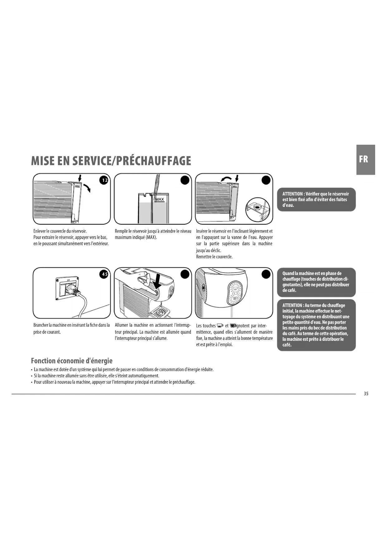 Mise en service/préchauffage 35 Fonction économie d'énergie 35 Rinçage circuits intérieurs 36 Utilisation des tasses 36