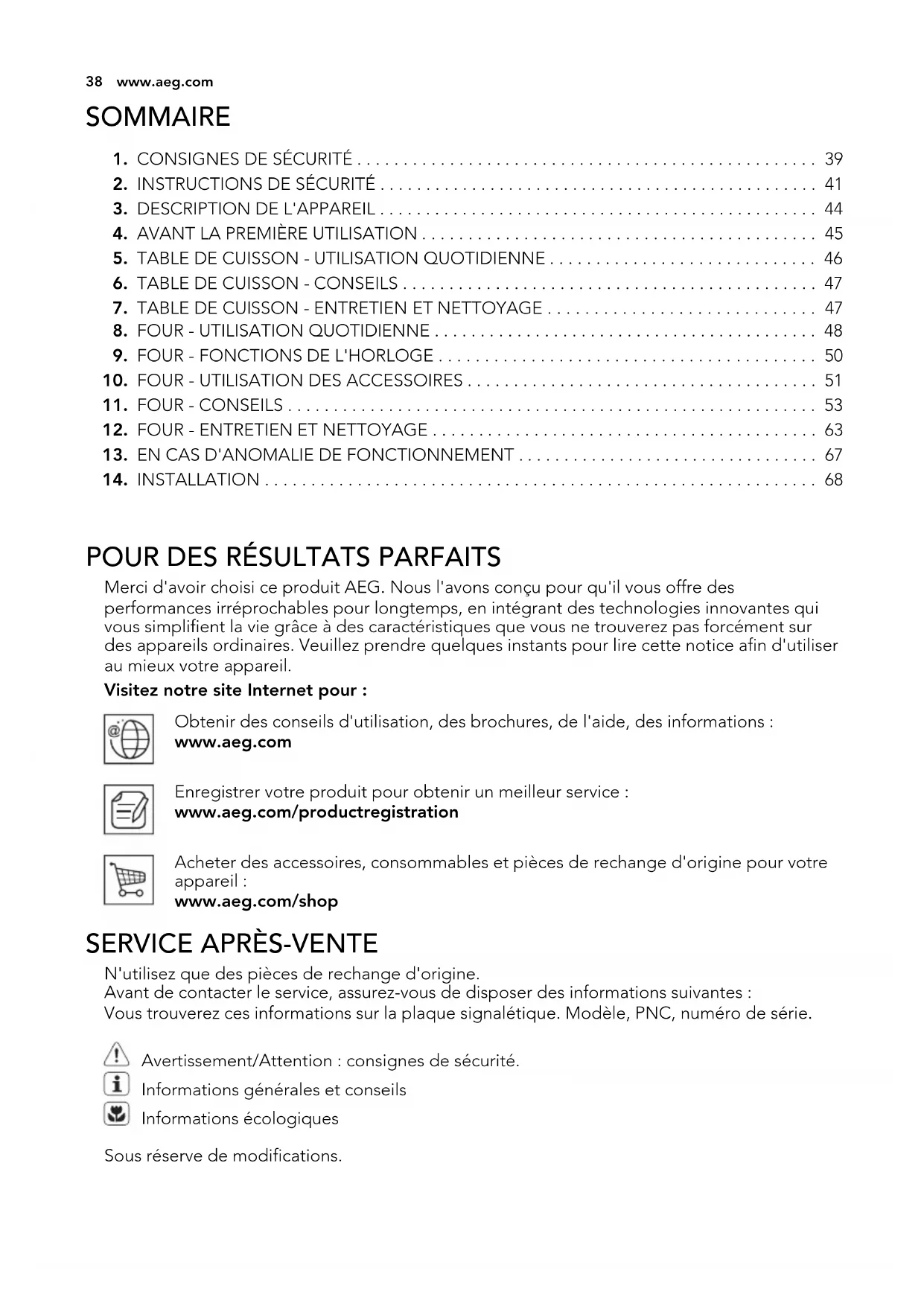 POUR DES RÉSULTATS PARFAITS Merci d'avoir choisi ce produit AEG. Nous l'avons conçu pour qu'il vous offre des
