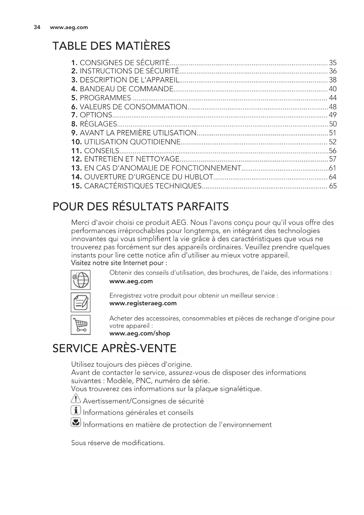 POUR DES RÉSULTATS PARFAITS Merci d'avoir choisi ce produit AEG. Nous l'avons conçu pour qu'il vous offre des