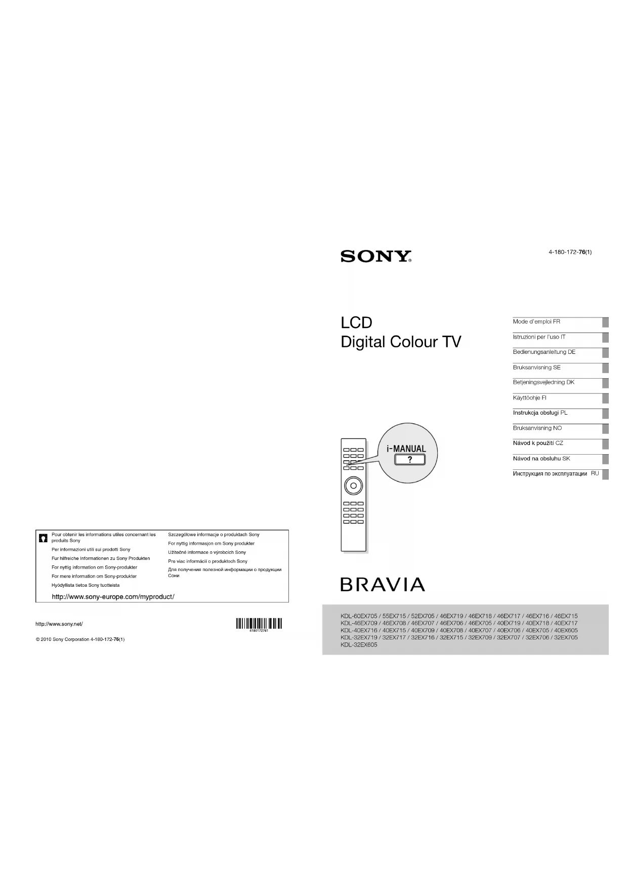 MODE D'EMPLOI Bravia KDL32EX715 SONY