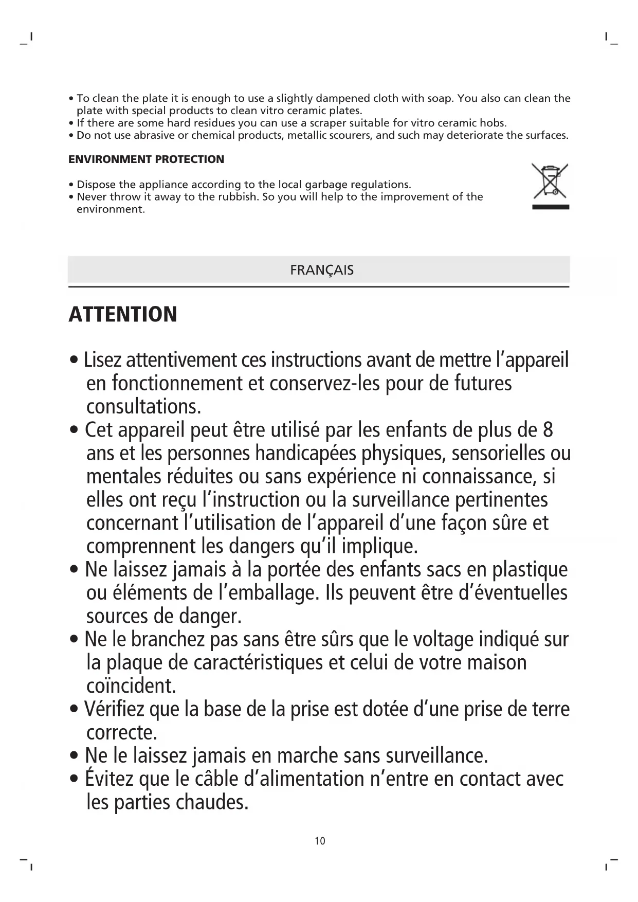 - Avant de procéder à son nettoyage, déconnectez l’appareil du réseau et attendez que la plaque soit totalement froide.